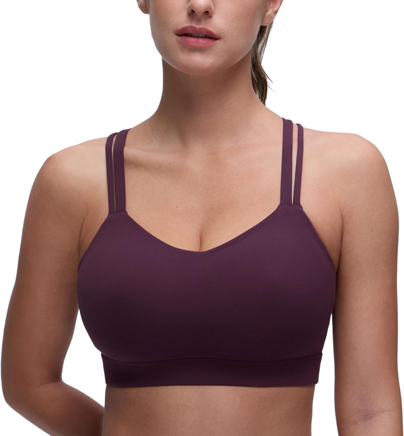 CRZ YOGA Softness Mold Butterluxe D/DD Cup Longline Sports Bras for Women - Supportive Double Straps Cross Back Yoga Top