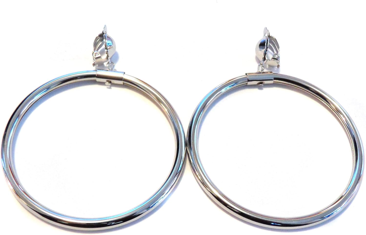 Clip on Earrings Silver Tone Clip Earrings 3 Inch Hoop Earrings