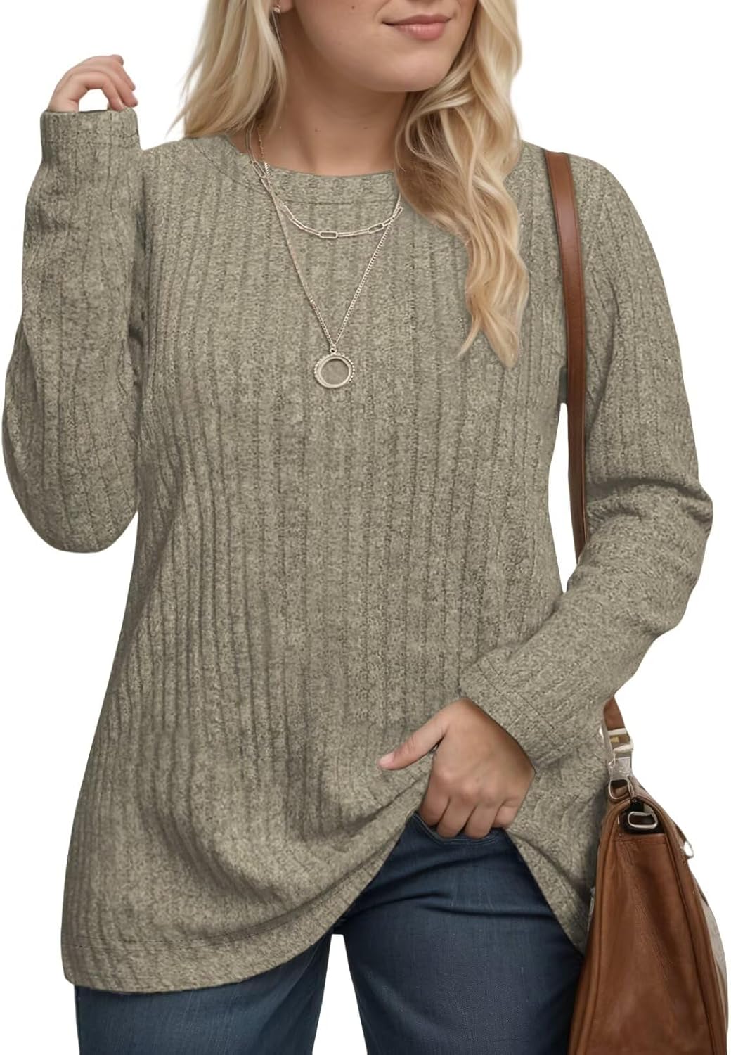 DOLNINE Women's Plus-Size-Tops Long Sleeve Comfy Crewneck Shirts Lightweight Casual Loose Fit Sweatshirts Tunics XL-5XL