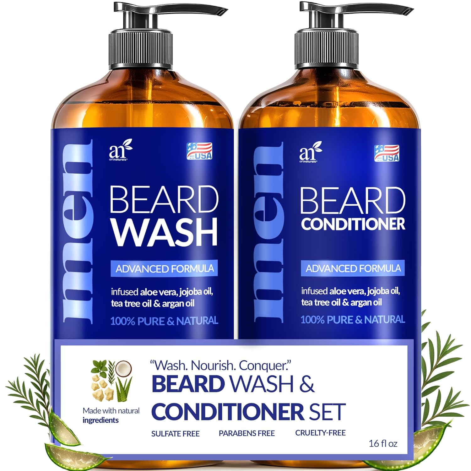 Artnaturals Beard Shampoo and Conditioner Set - Softens, Strengthens and Smooths Mustache and Beard Hair - All Skin and Hair Types