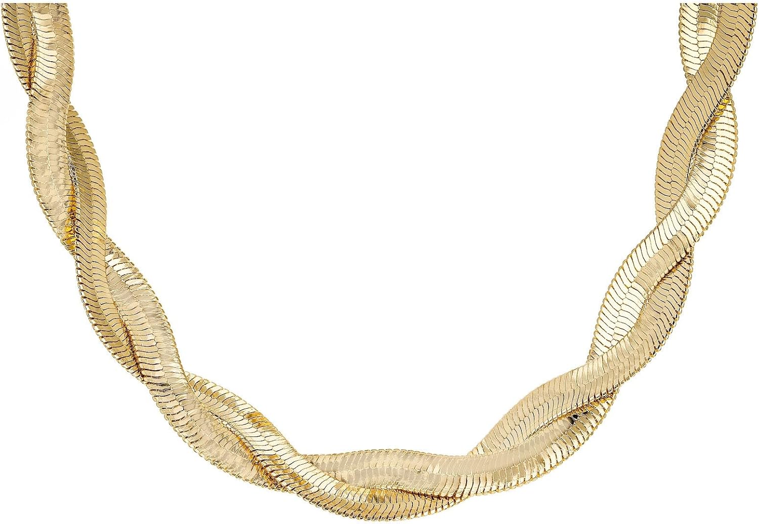 JTV Braided Gold-Plated Herringbone Chain Necklace for Women - Thick Adjustable Chain with Crystal Accent Clasp - Elegant Gold Necklace for Everyday or Formal Wear - Gift Box Included