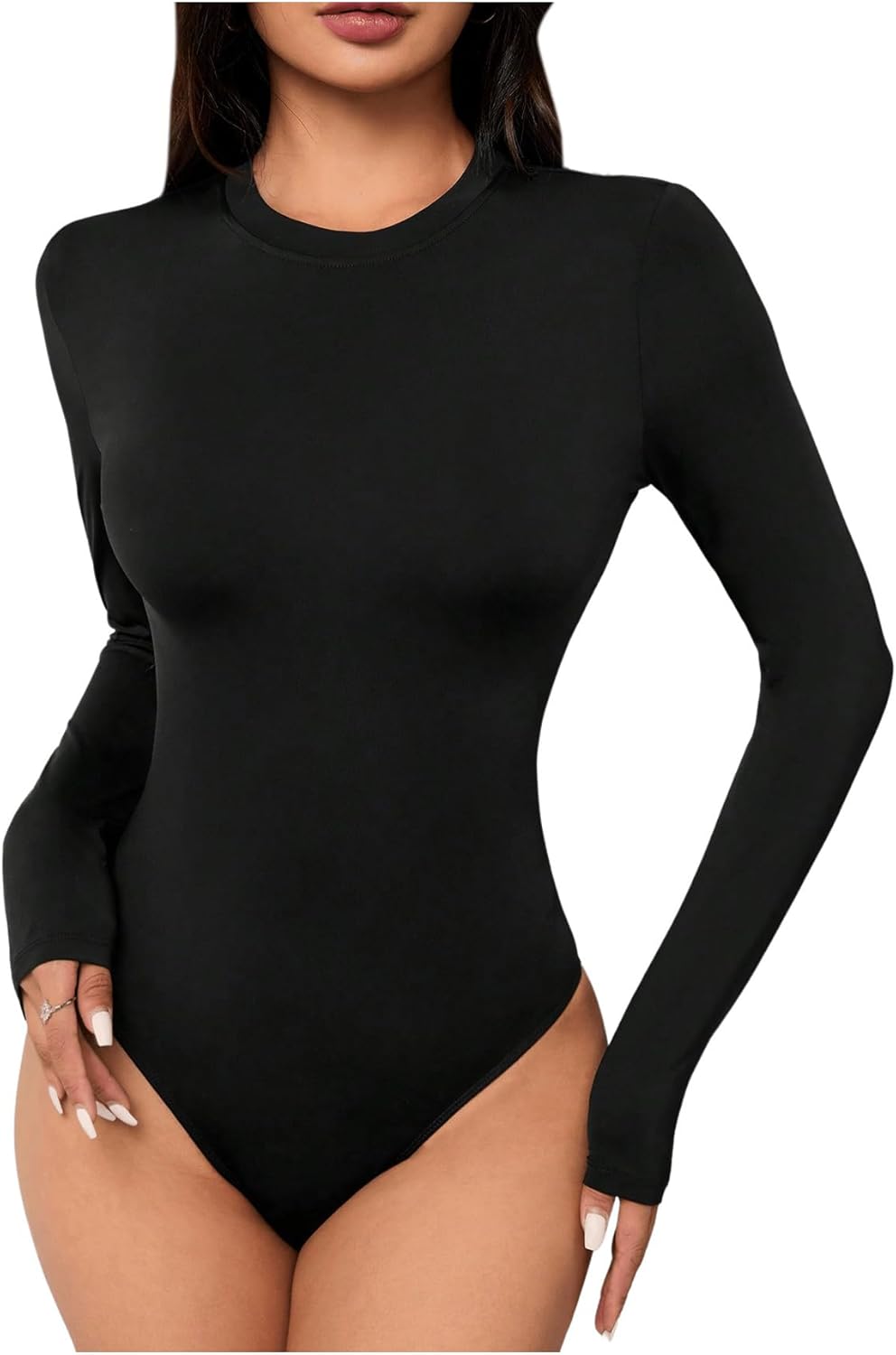SweatyRocks Women's Round Neck Long Sleeve Slim Fit Bodysuit Tops Jumpsuits