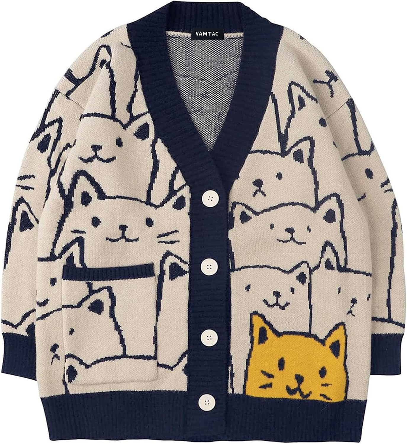Vamtac Cat Cardigan Sweaters for Men Fall V-Neck Cardigans 2026 Oversized Button Long Sleeve Sweater