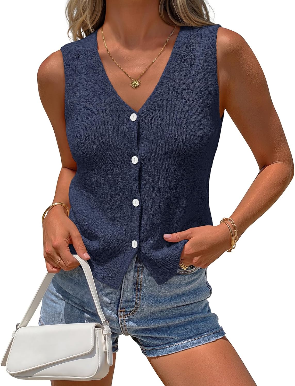 MEROKEETY Women's Sleeveless Sweater Vest 2026 Spring Summer Knit Tank Top Casual V Neck Button Waistcoat Cardigan