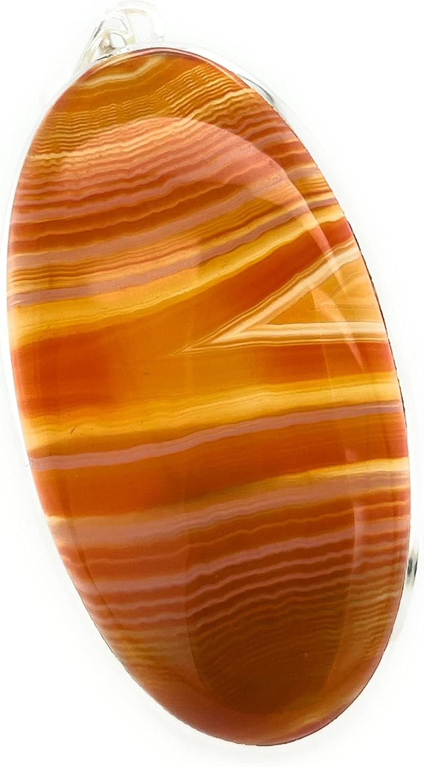 Natural Lake Superior Agate 925 Solid Sterling Silver Pendant 55mm