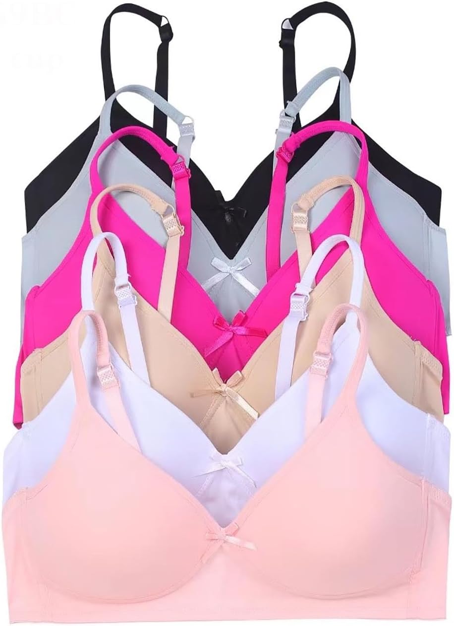 6 Pieces No Wire Full Cup Plain/Lace Light Padded Wire Free Bra A/B/C/D/DD