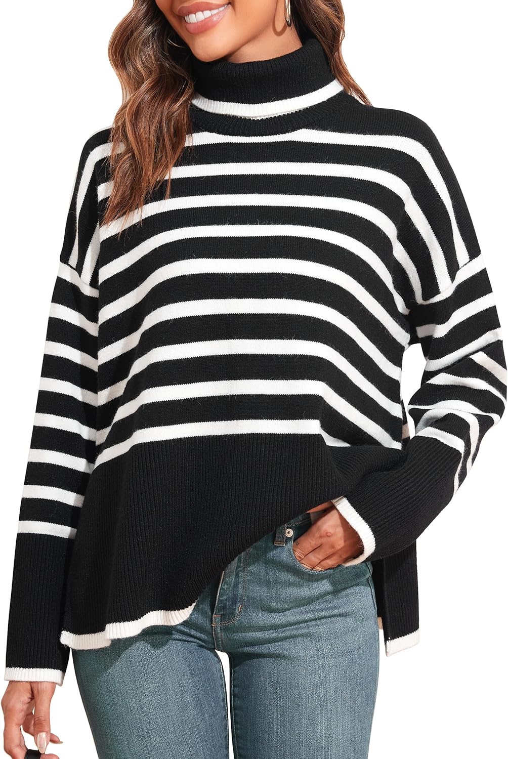 PrettyGuide Women's Turtleneck Oversized Sweaters Casual Long Sleeve Side Slit Chunky Knit Tunic Sweater Tops