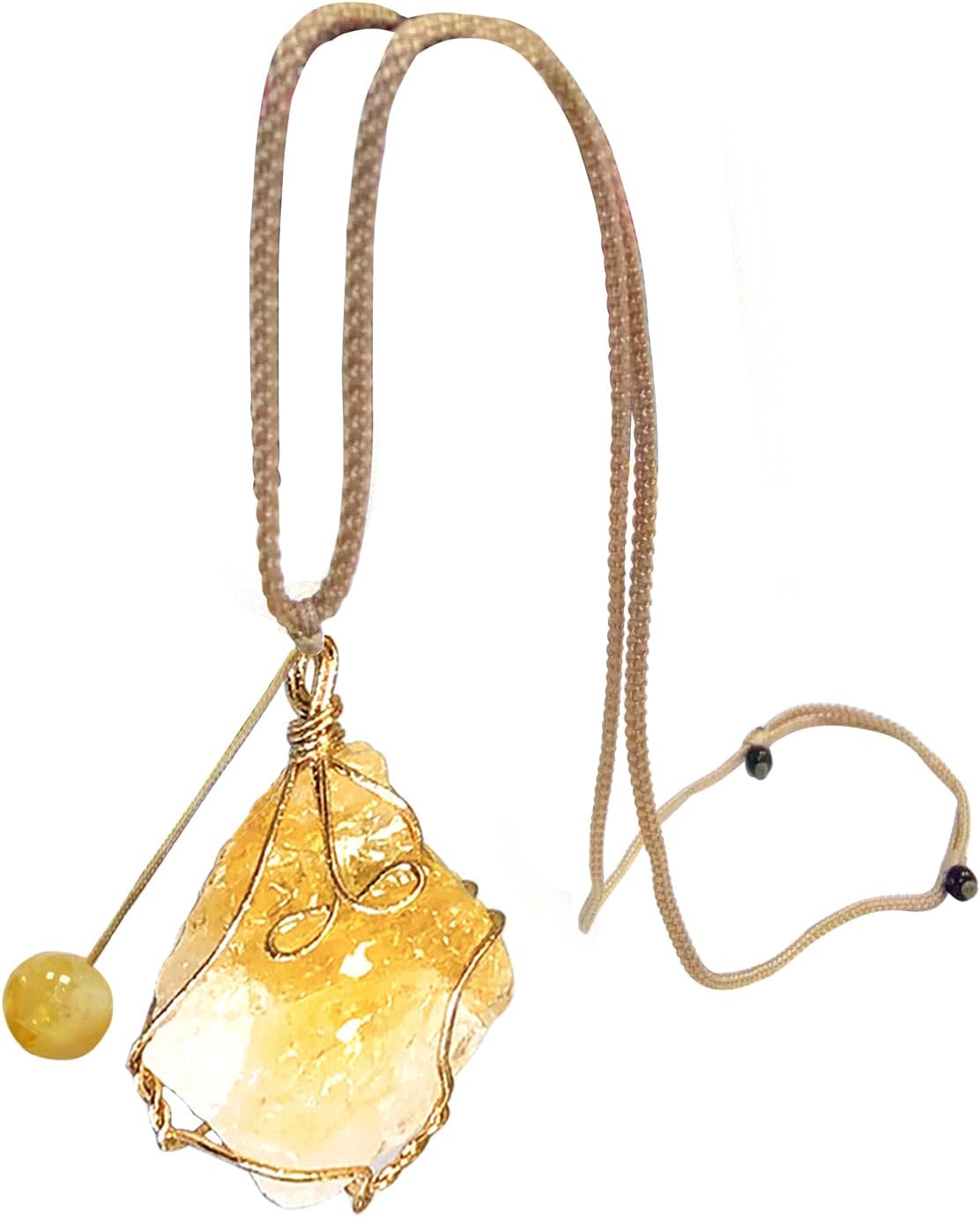 Big raw citrine stone crystal pandent necklace, handmade wire wrapped healing stone November birthstone Reiki Meditation Jewelry for women ladies adjustable length 26”