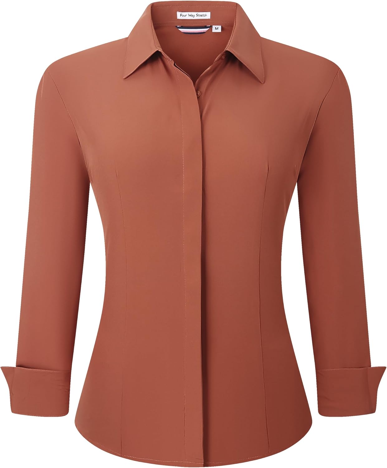 Esabel.C Womens Button Down Shirts Long Sleeve Regular Fit Stretch Work Blouse