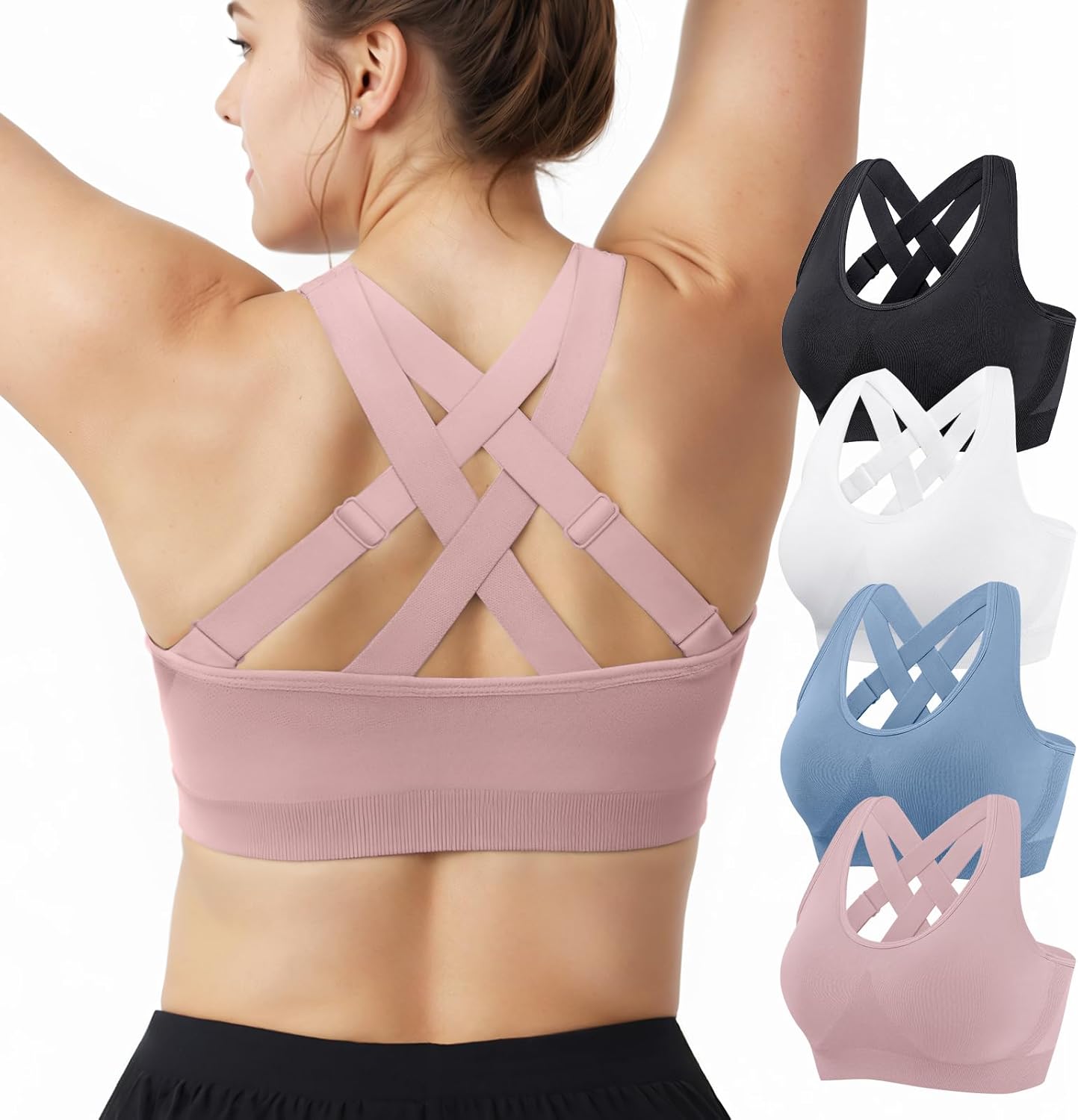 FITTIN Adjustable Sports Bras for Women: High Support Impact Padded Full Coverage Bra for Workout Gym - for C-DDD Large Bust