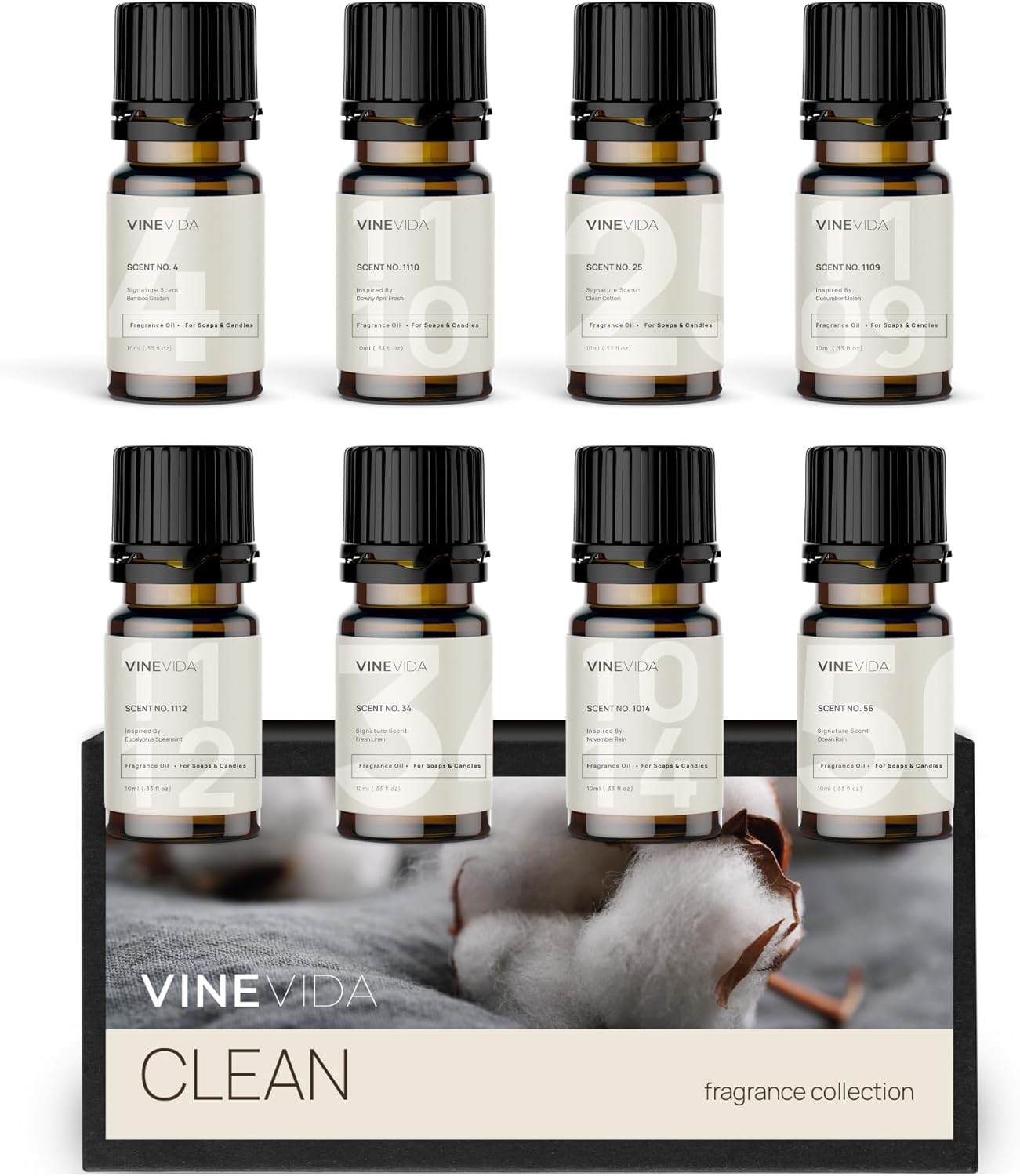 VINEVIDA [Set of 8] Clean Scents for Candle Making, Made in USA Candle Fragrance Oil, Soap Making Essential Oils, Diffuser Oil Scents