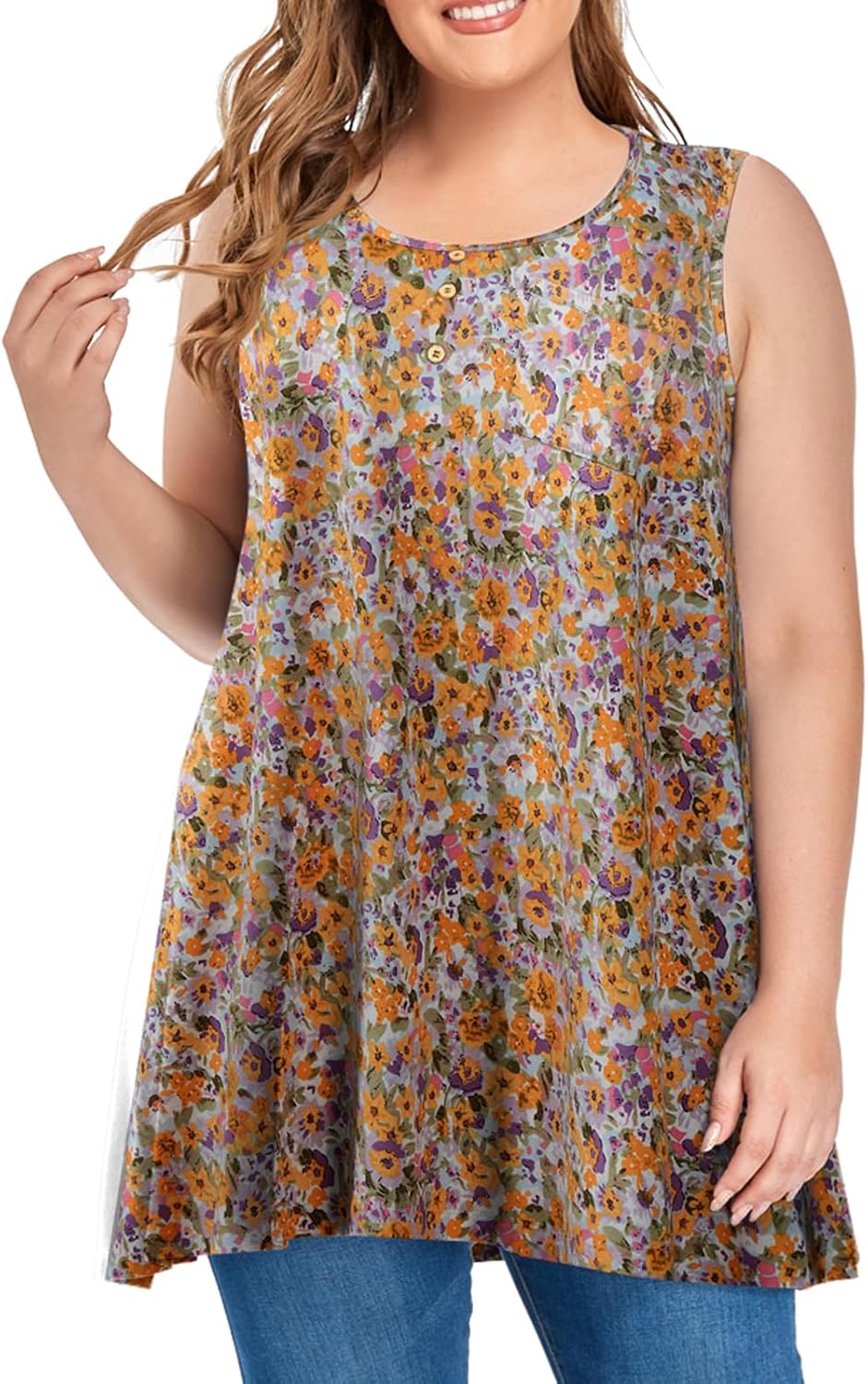 OVERWORETY Women's Plus Size Tank Tops Casual Loose Swing Sleeveless Tunic T-Shirts with Pocket