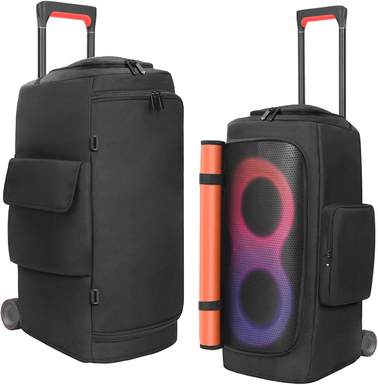- 【Easy to Carry】This speaker case reserve handle/pull rod opening design, makes it easy to carry, and can be easily folded to save space when not in use. It is easy and comfortable to carry. It is very suitable for outdoor activities such as travel, picnics, outdoor gatherings, family parties, DJ or music performances.