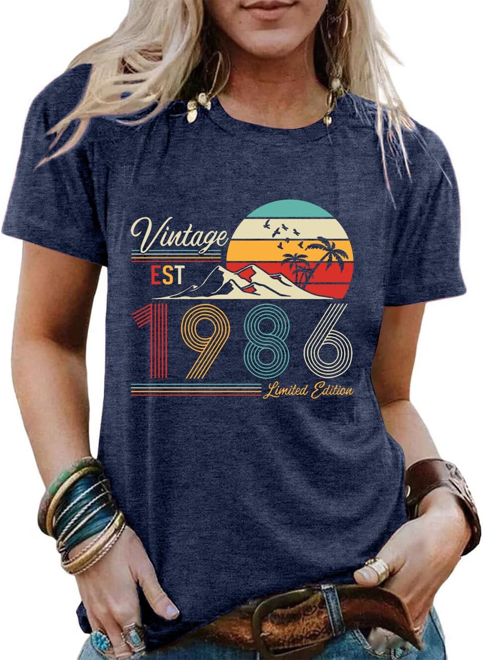 40th Birthday Shirts for Women Vintage 1986 Birthday Party Gift Tshirt Casual Short Sleeve 40 Bday Tee Top