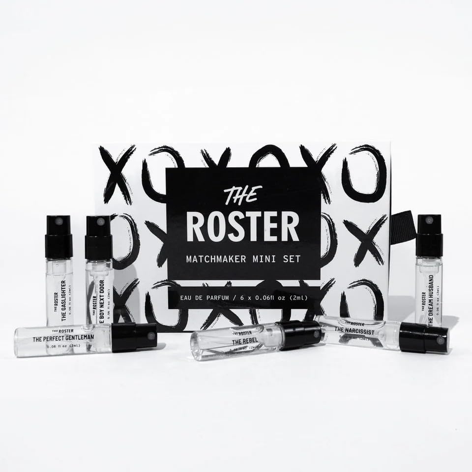 The Roster Fragrances- Matchmaker Mini Set. Six (6) sample bottles of our most popular 2 mL Womens Perfumes. Eau de Parfum Long Lasting Womens Perfume. 6x TSA Approved Travel Perfume Bottles.