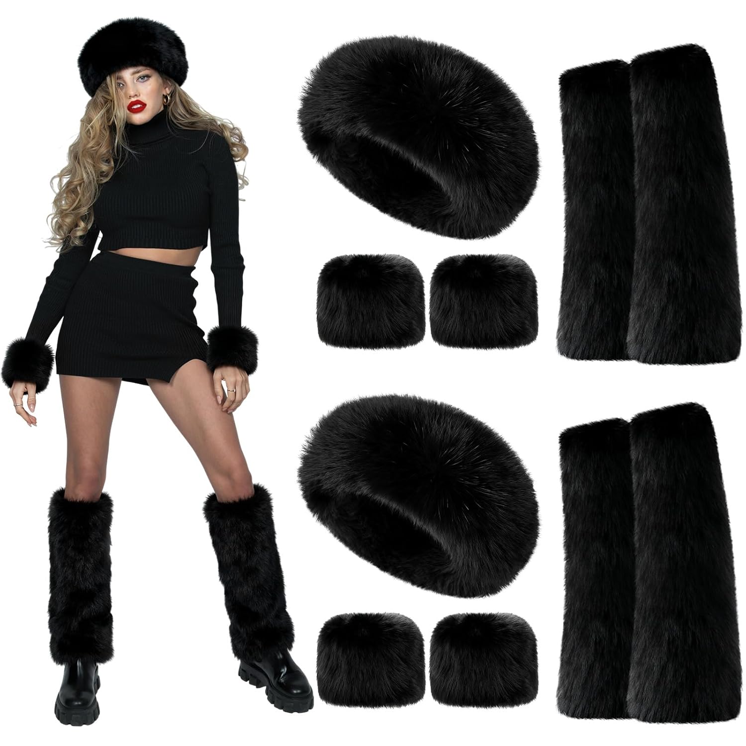 - Winter Warm Accessories: you will receive 1 piece of faux fur headband, 2 pieces of faux fur wrist cuffs and 2 pieces of leg warmers, which are nice combinations to keep you warm in cold weather, quantity is also sufficient for you to use