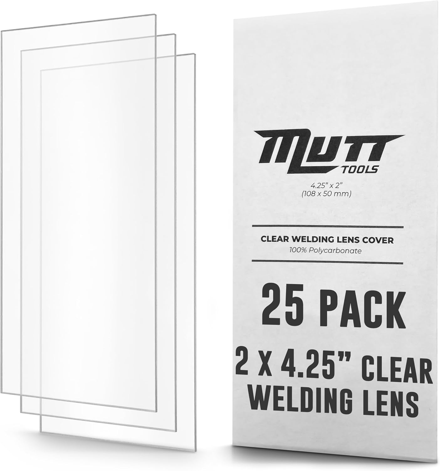 Mutt Tools 25 Pack Clear Welding Lenses 2x4.25 - Premium 0.04" Thick Clear Lens for Welding Hood - 2x4 Welding Lens Clear - Replacement Welding Helmet Lens for Standard Helmets