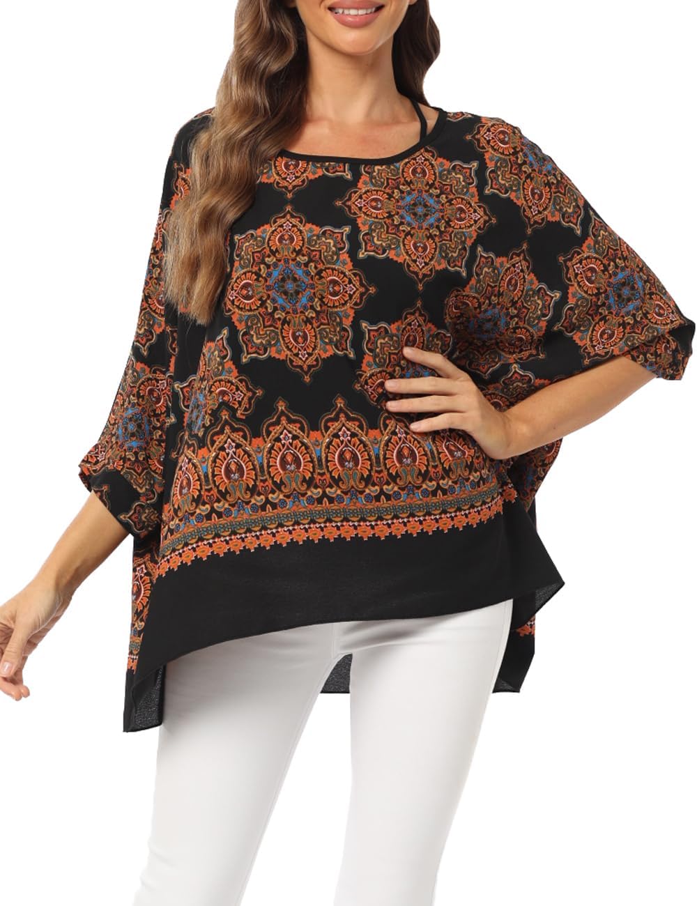 Plus Summer Batwing Sheer Chiffon Blouse Shirt for Women Flowy High Low Colorful Boho Tunic Cover up