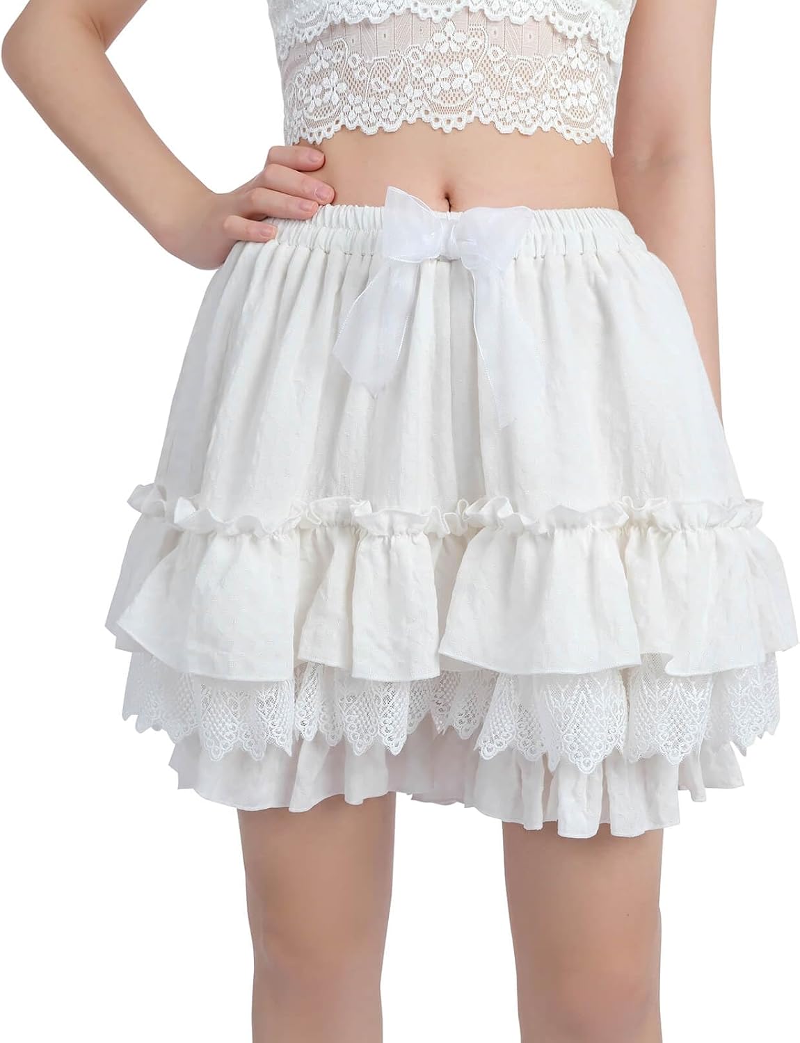 Nuoqi White Ruffle Bloomer for Women Cotton Victorian Pantaloons Knee Length Bloomer