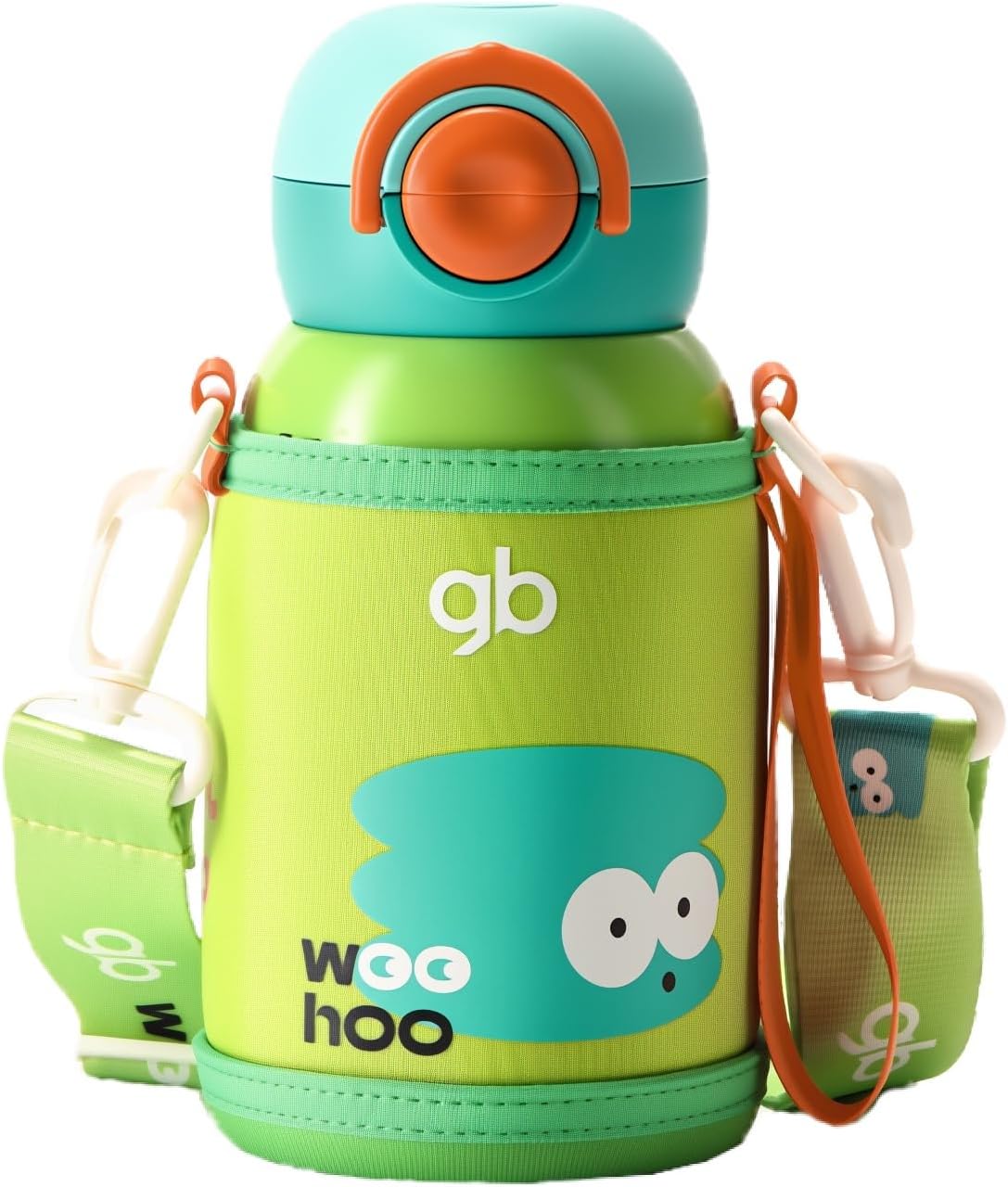 gb Insulated Water Bottle for Kids with Straw, Direct Drink Spout, BPA-Free, SUS316 Stainless Steel, 12-Hour Temperature Retention, Leak-Proof, Adjustable Oxford Strap, Green