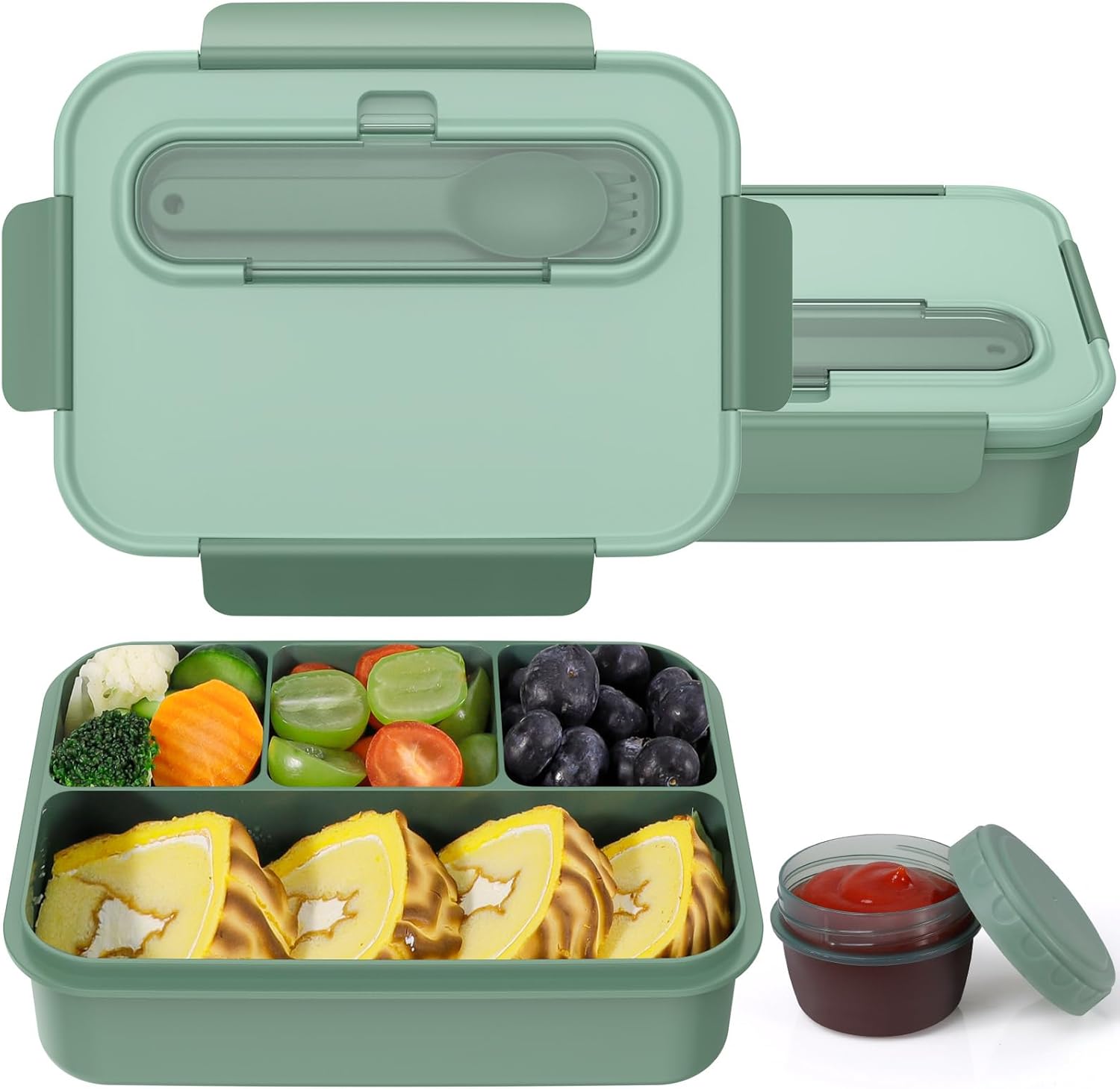 Caperci Bento Box Adult - 50 oz Large Lunch Containers for Adults and Teens, 4-Compartment Bento Lunch Box with Utensils & Leak Proof Sauce Cup, Dishwasher Safe, Durable, BPA-Free (Khaki Green)