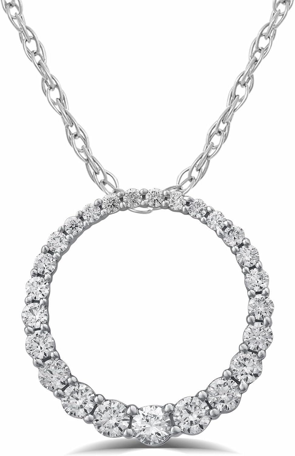 La Joya Graduating Circle Diamond Necklace for Women | 1-2 Ct. Tw. Lab Grown Diamond Pendant Necklace | White Rhodium Plated 925 Sterling Silver Circle of Love Necklace | Ideal Gift for Her