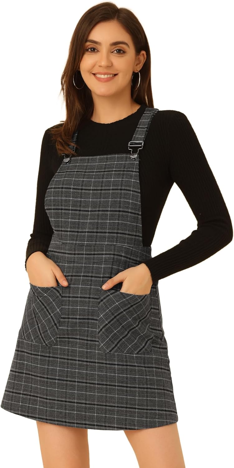 Allegra K Women's Plaid Overall Dress Vintage Checkered Suspender Skirt Short Pinafore Dress