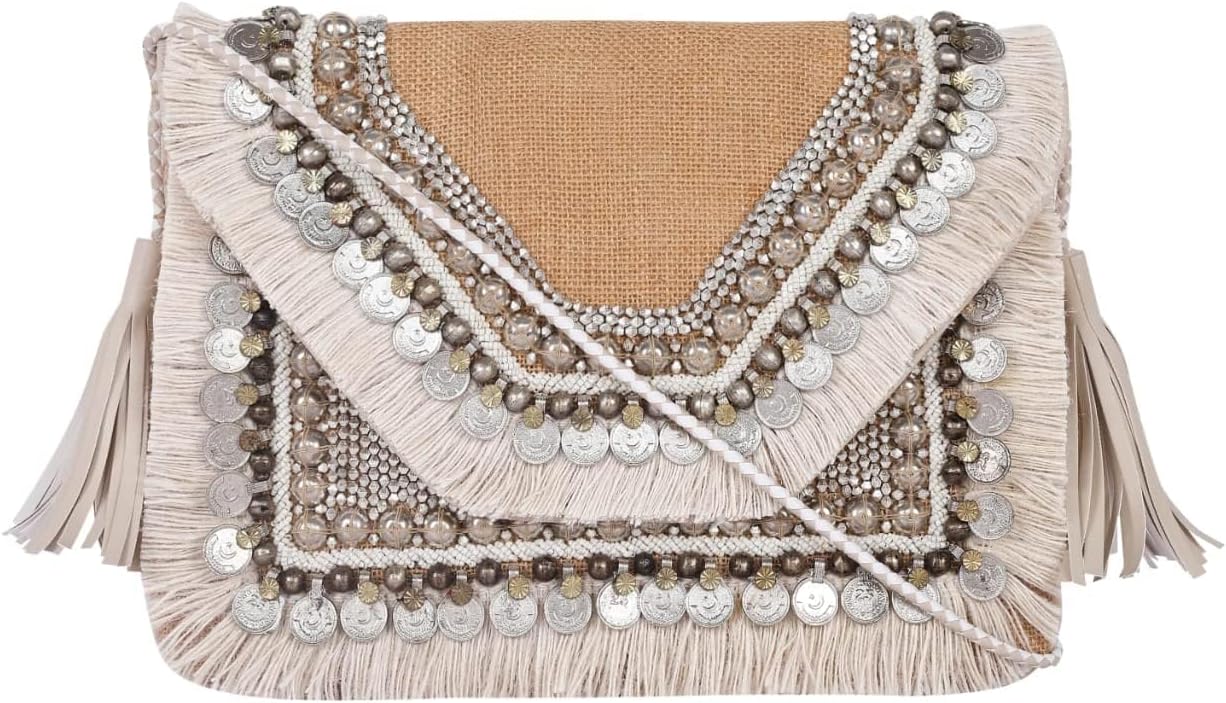 Hand-Embroidered Straw Clutch–Woven Crossbody Shoulder Bag Summer Beach Envelope Purse Handbag for Travel & Parties