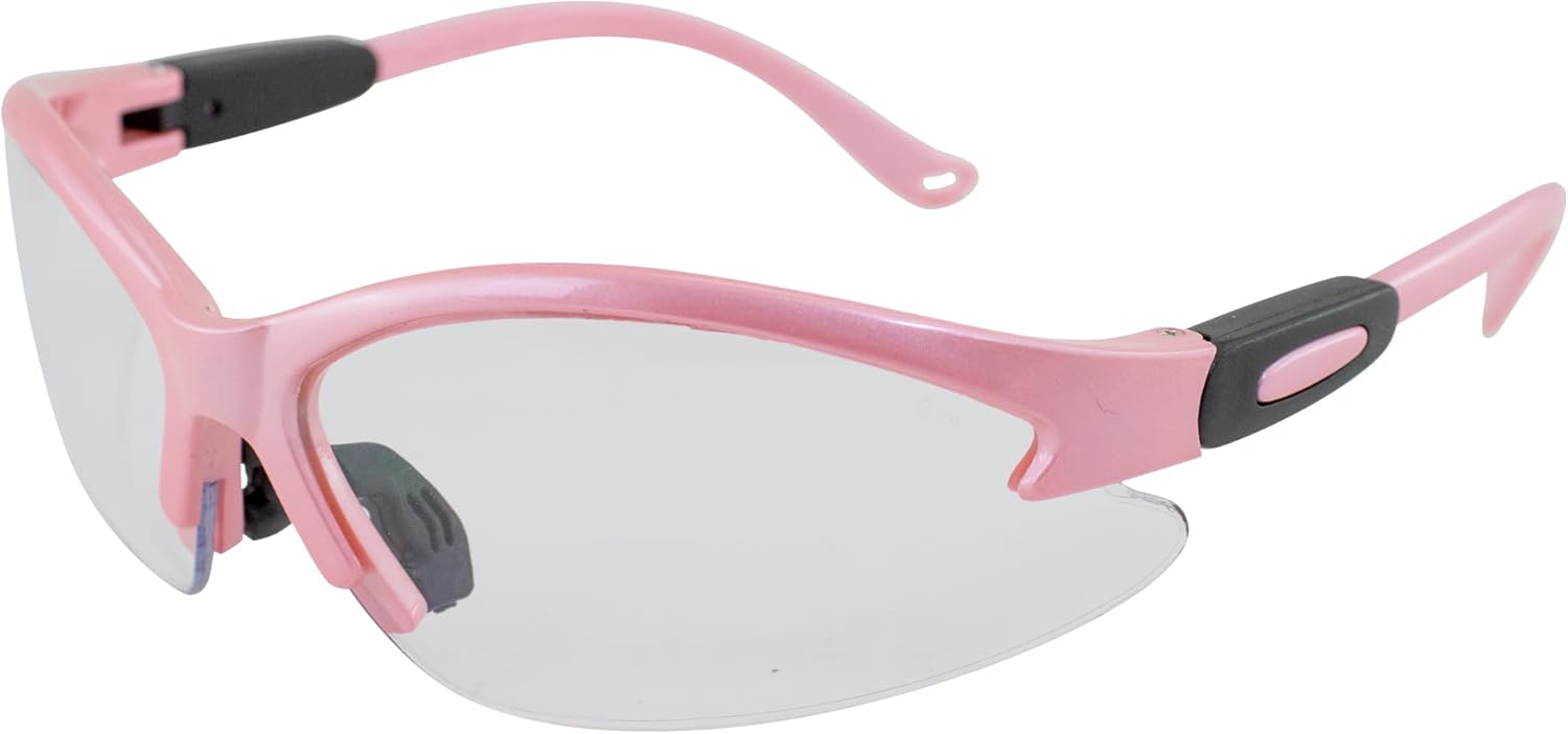 Global Vision Cougar Safety Glasses Nurses Dental Assistant Glasses Shooting Glasses for Women Ladies Men Light Pink Frame Clear Lens