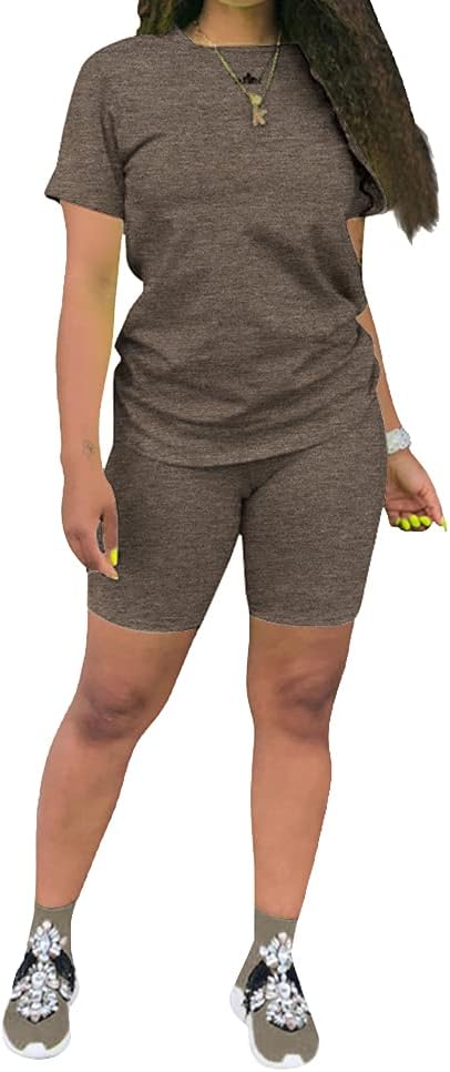 KINIKO Women's 2 Piece Casual Fashion Sports Solid Color Suit short Sleeve top and Pants Set Sweatshirt