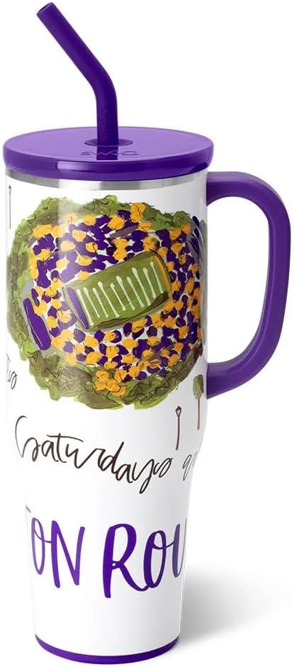 Swig Life 40oz Mega Mug, 40 oz Tumbler with Handle and Straw, Cup Holder Friendly, Dishwasher Safe, Extra Large Insulated Tumbler, Stainless Steel (Saturdays in Baton Rouge)