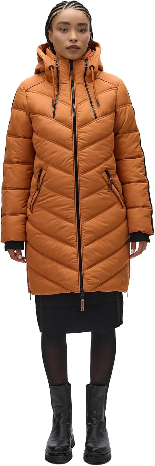 Marikoo Women's Winter Coat with Hood - Quilted Long Puffer Jacket - Thigh-Length - Armasa Rusty Cinnamon XS