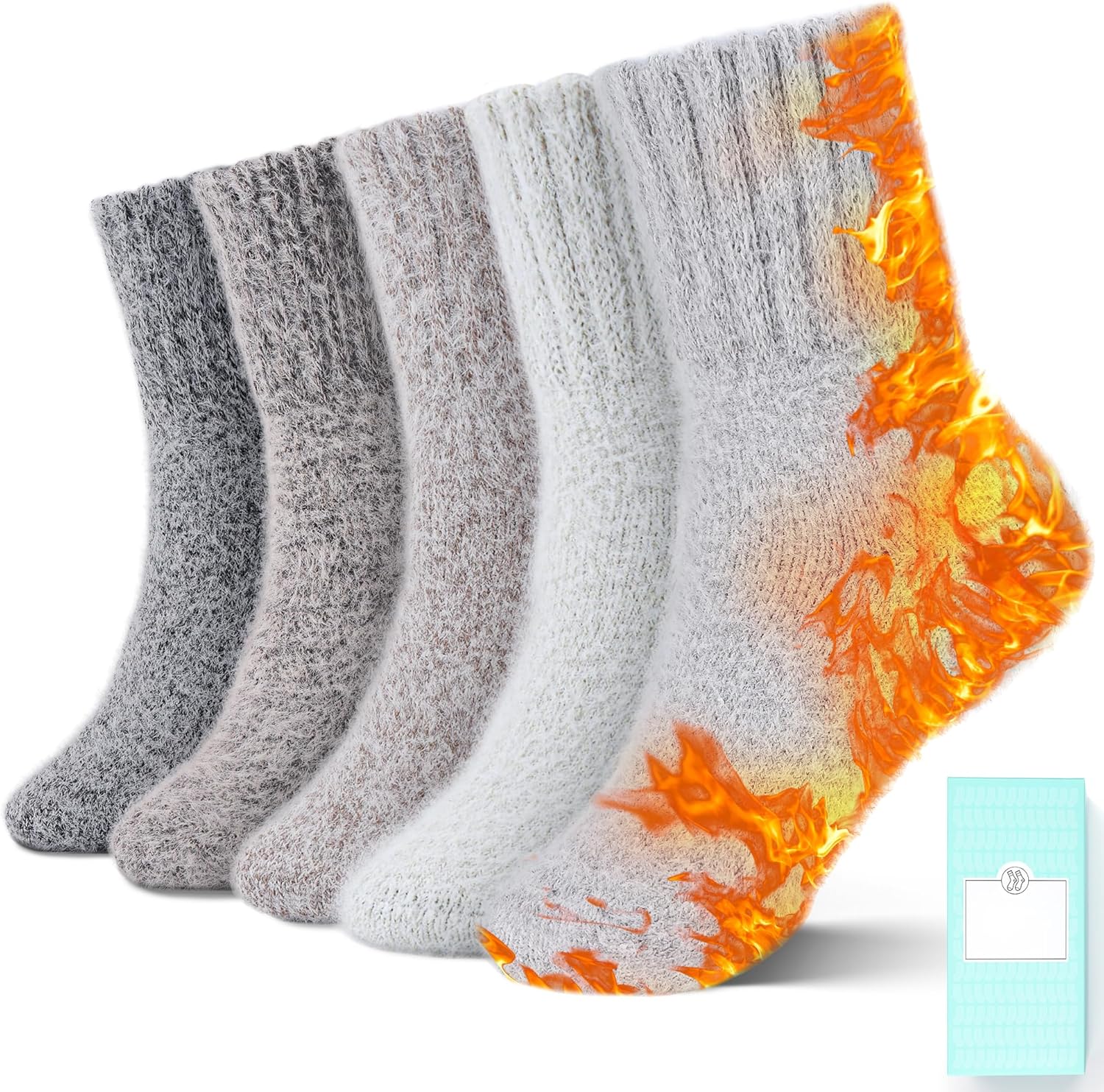 Fuzzy Socks For Women 5 Pairs Thermal Thick Winter Warm Cozy Comfy Fluffy Slipper Socks Gifts for Women