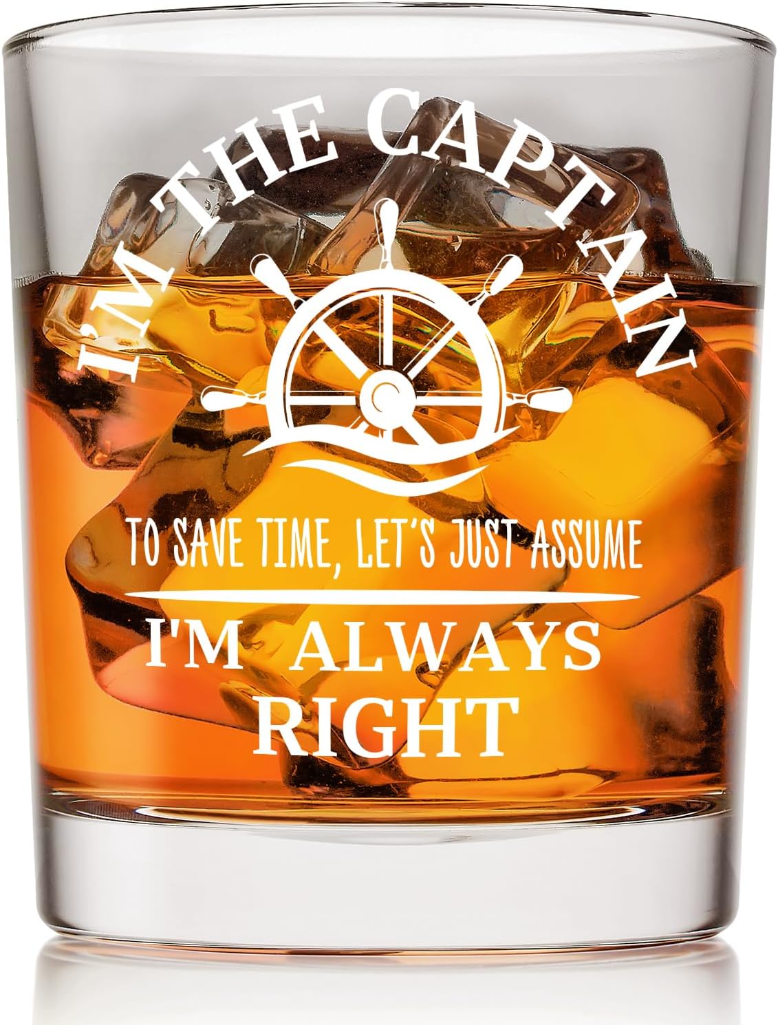 Voatok Boat Captain Gifts Whiskey Glasses 10 oz, Nautical Gifts for Boat Owners Men, I'm the Captain Always Right Old Fashioned Rocks Glasses for Men Drinking Scotch Bourbon Cocktail Liquor Vodka