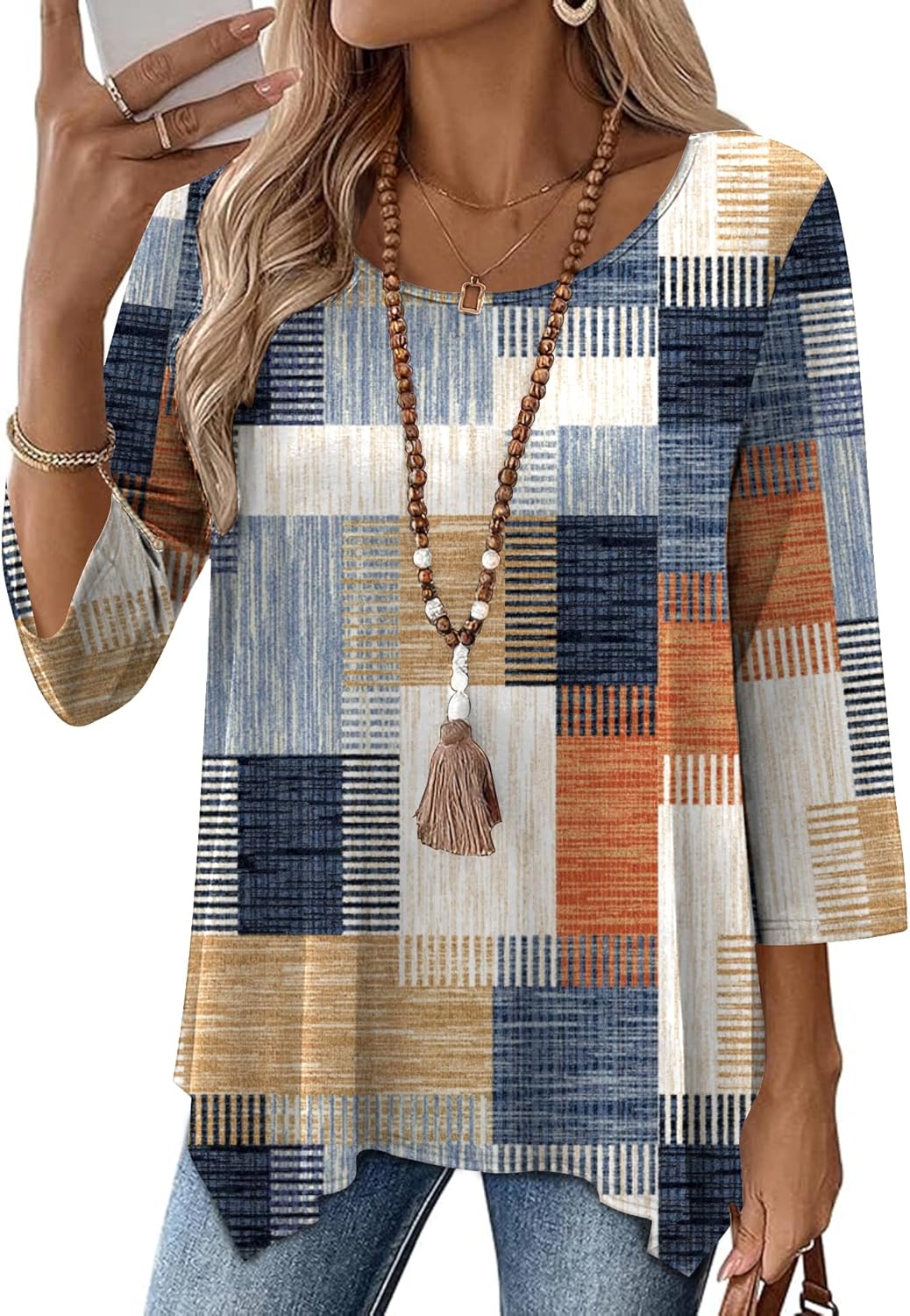 AKEWEI 3/4 Length Sleeve Womens Tunic Tops Loose Fit Blouses Dressy Casual Crew Neck Tees S-3XL