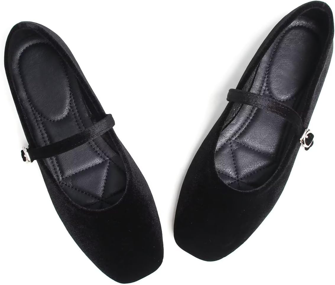 LUXINYU Flats for Women Dressy Square Toe Ankle Strap Mary Jane Shoes Casual Slip On Flats Comfortable Ballet Flats