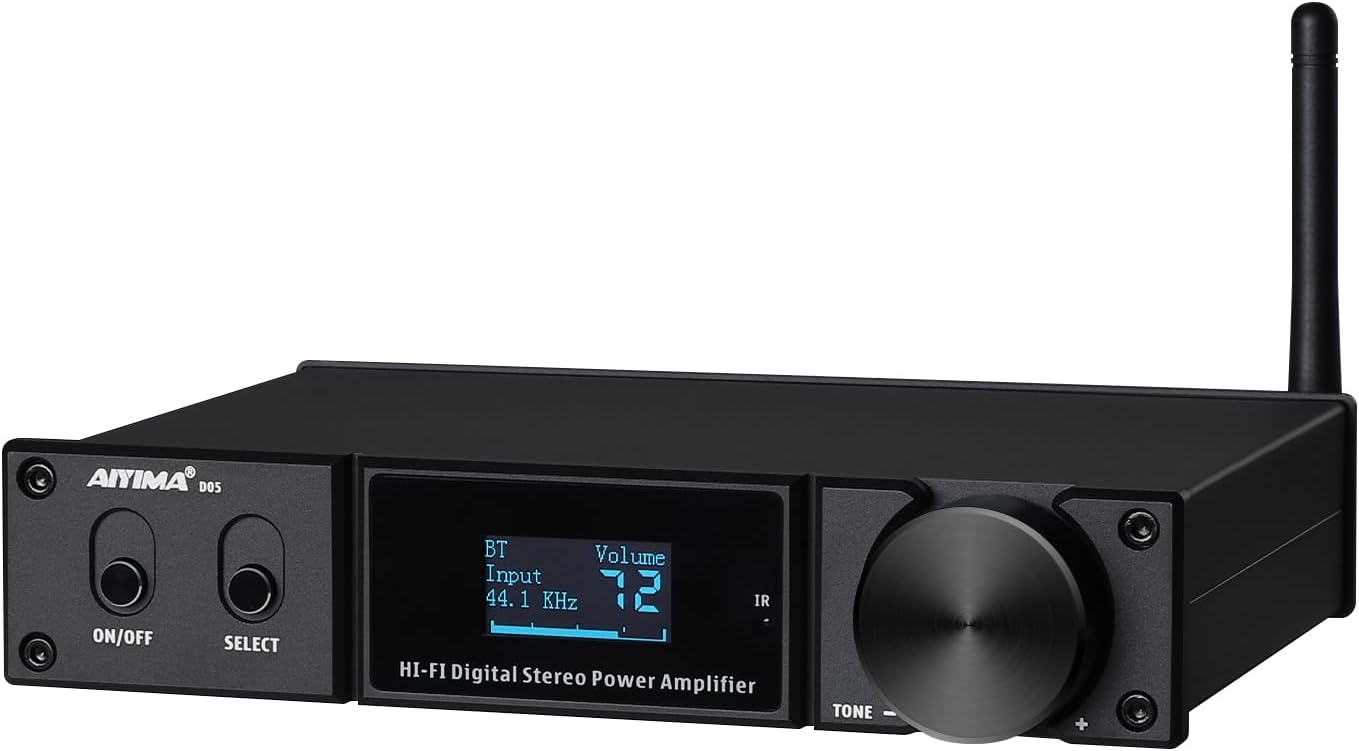 AIYIMA D05 Bluetooth 5.0 Power Amplifier 120Wx2 Stereo HiFi 2.1 CH Digital Sound Amplificador 24Bit/192kHz Class D Amp USB DAC Coaxial Optical OLED AptX, Support Subwoofer & with Remote (D05)