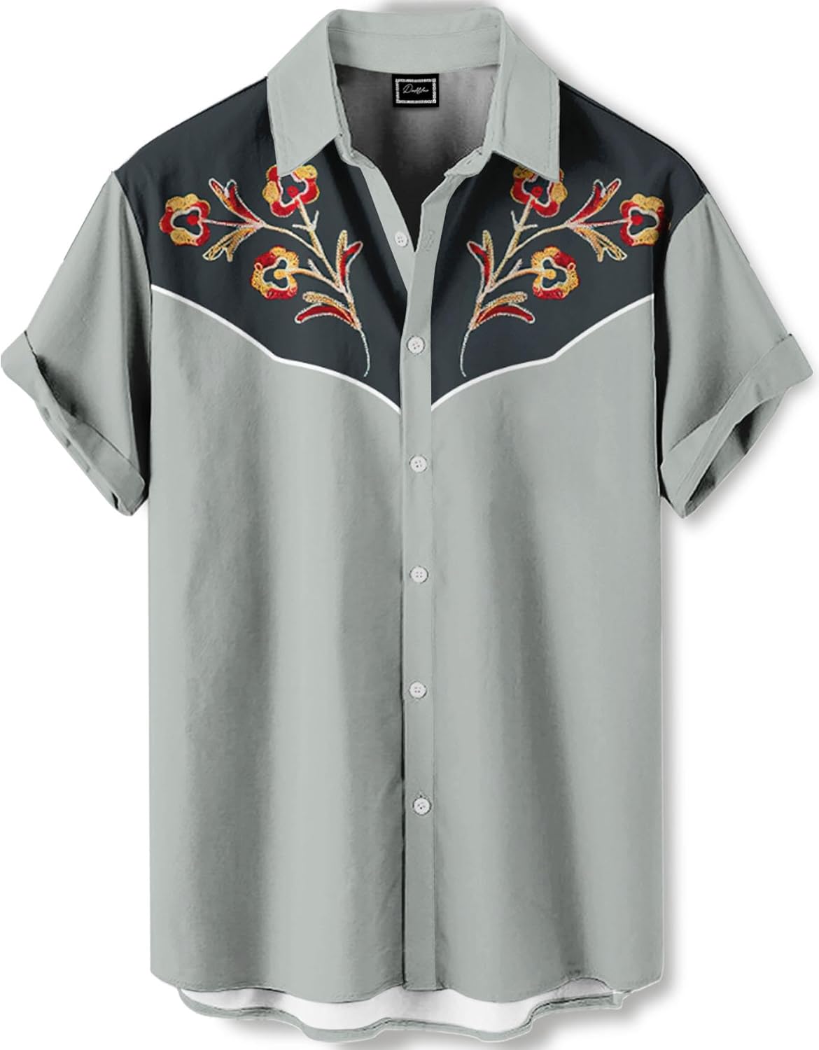 DADDYLOCO Men’s Hawaiian Shirt Western Cowboy Symmetrical Print Short Sleeve Button Down Casual Beach Holiday Summer Shirt