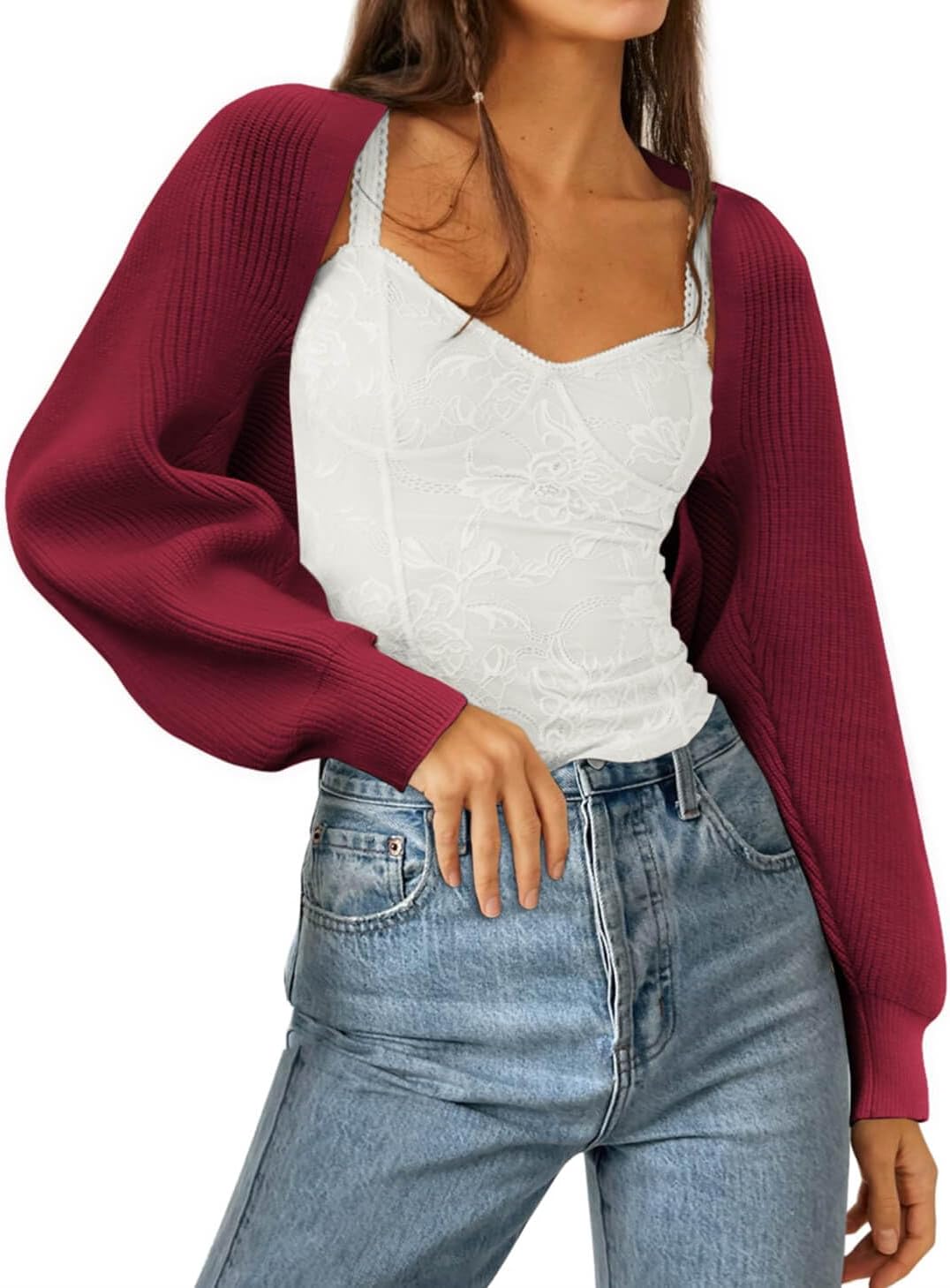Zwurew Women's Bolero Shrug Sweater 2026 Knitted Long Sleeve Open Front Cropped Cardigan Shrugs Sweaters Y2K Tops