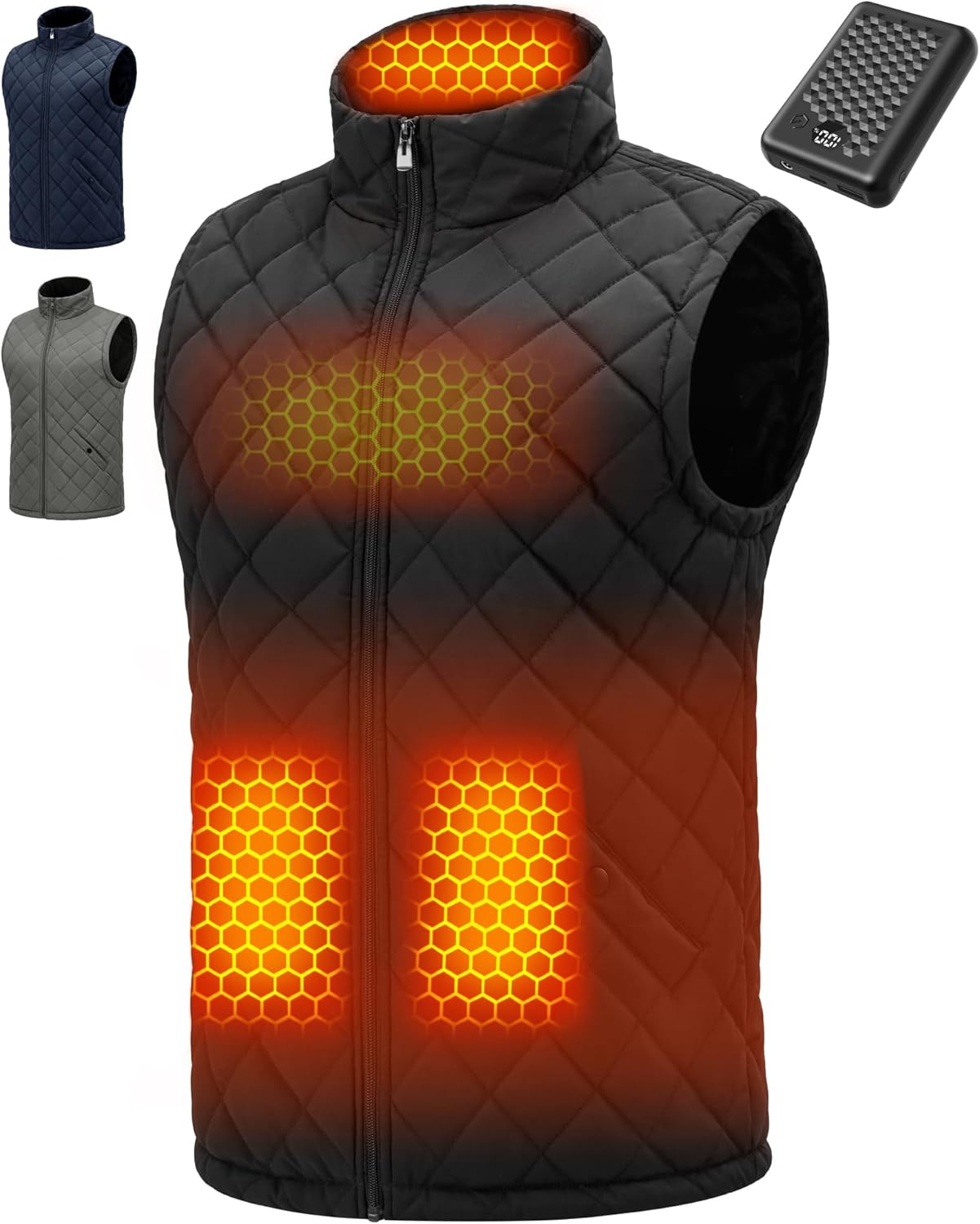 Puffer Heated Vest for Men Battery Pack Included Rechargeable Golf Down Jacket Motorcycle Work Coat Electric Self Warming Sweatshirt Fleece Lightweight Hoodie Thin Clothing Apparel 5v 7.4v Black