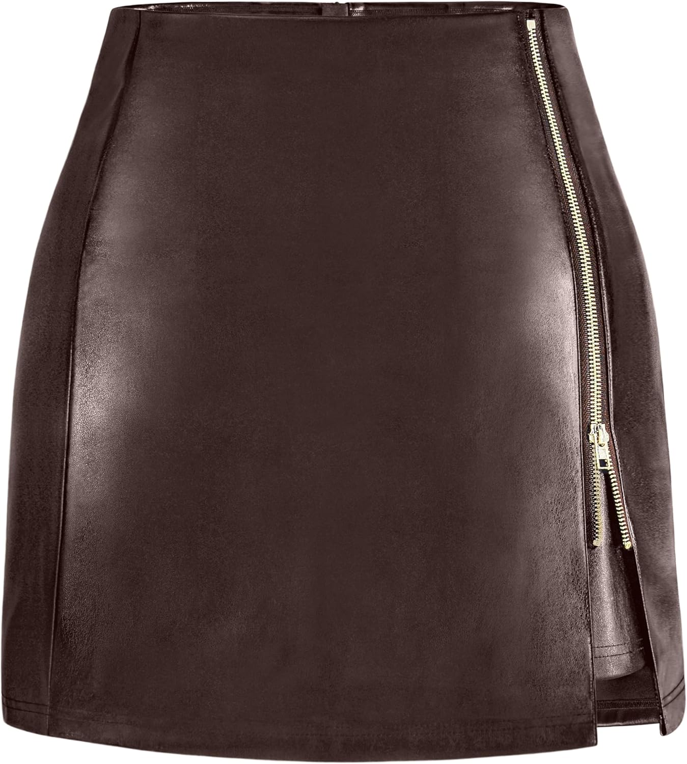 FLUFFY SENSE. Women's Leather Mini Skirt Stretchy High Waisted Zipper Slit Faux Pleather Bodycon Short Pencil Skirt