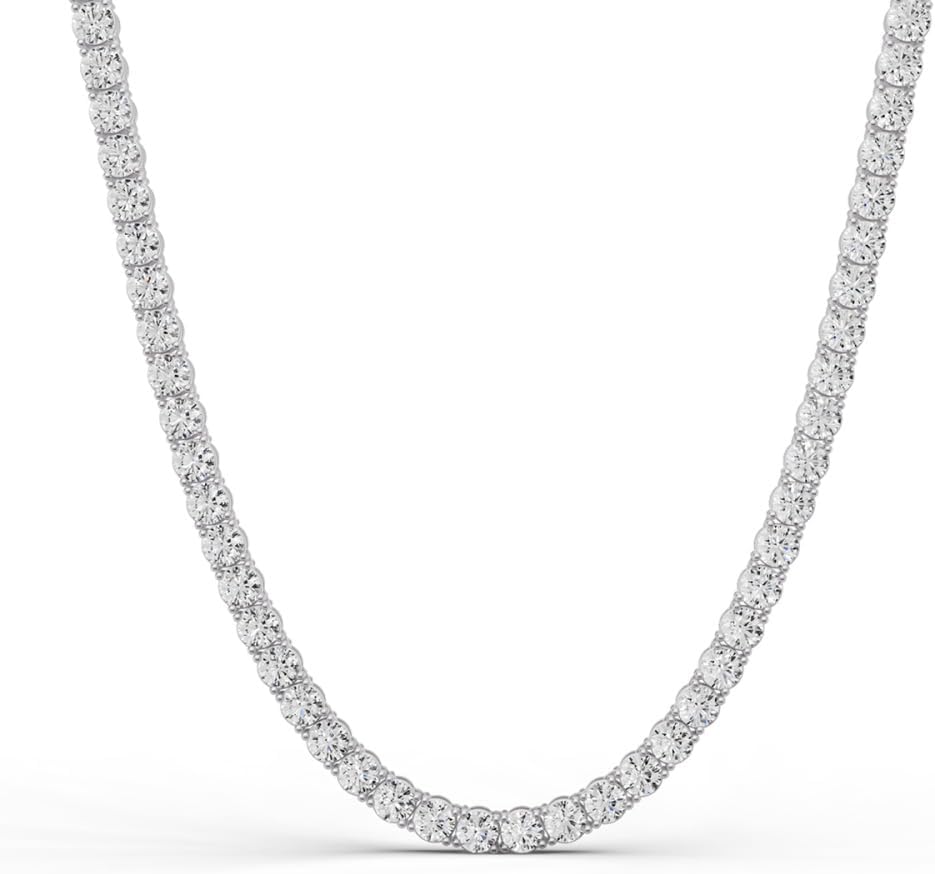 Diamond2Deal 14K White Gold Lab-Grown Diamond Tennis Straight Line Necklace 16 inch (10 Carat, E-F Color, VS1 Clarity)