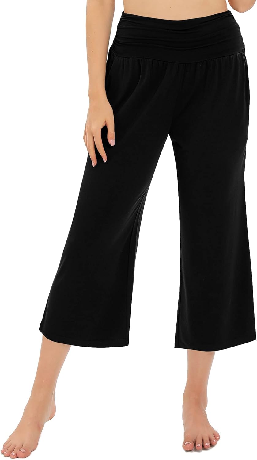 Urban CoCo Women's Comfy Yoga Capri Pants Casual Wide Leg Sweatpants High Waist Stretch Cropped Pants