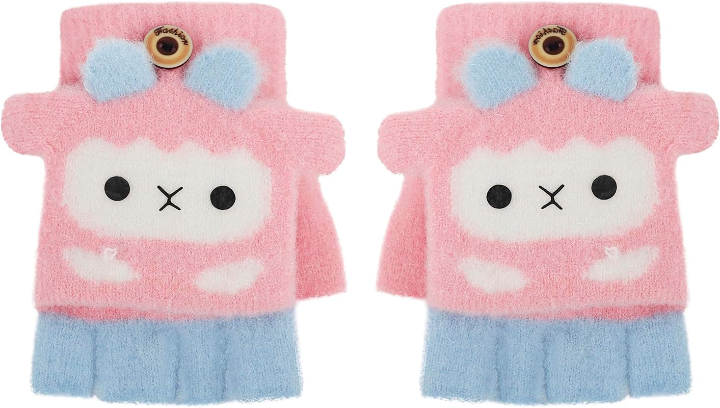 Starsouce Kids Winter Gloves with Flip Top Warm Knit Convertible Fingerless Gloves Fun Cute Mittens for Boys Girls Age 7-12
