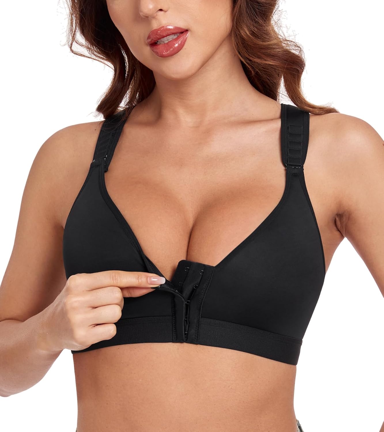 Lemorosy Women's Post Surgery Bra Front Closure Adjustable Straps Wireless Comfort Sport Brassiere