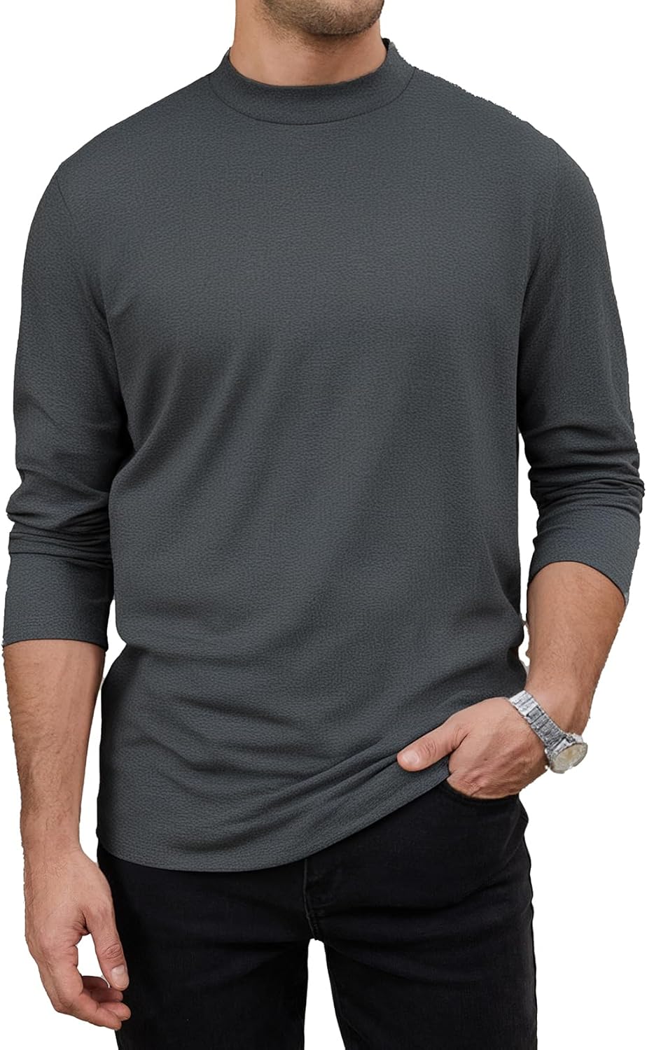 Men's Casual Cotton Mock Turtleneck Long Sleeve T-Shirts Solid Pullover Basic Lightweight Tee Tops