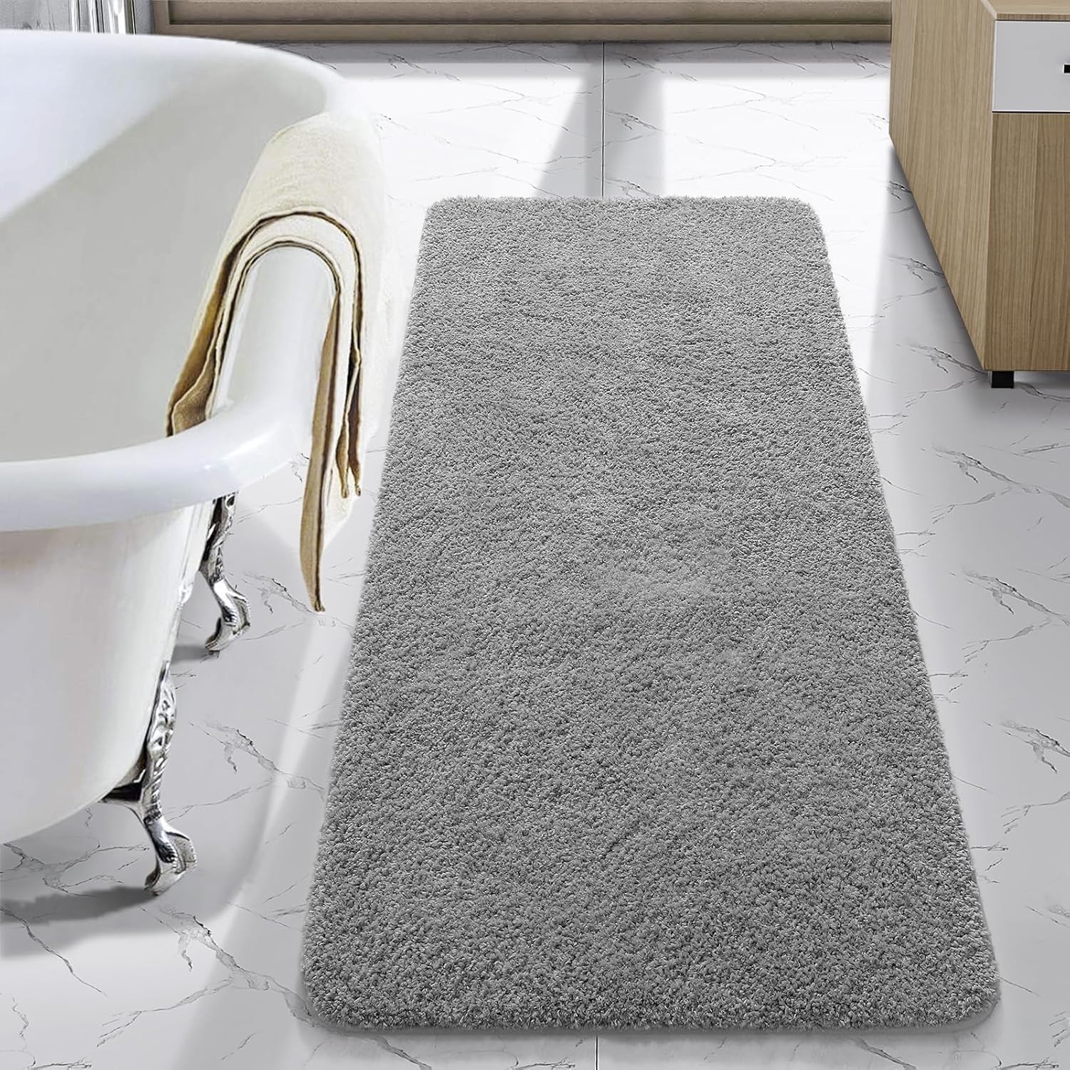 LOCHAS Bathroom Rug Runner 24x48 Inch, Soft Thick Absorbent Microfiber Bath Rugs for Bathroom, Machine Washable, Shaggy Plush Non Slip Bath Mat for Tub, Shower Floor, Quick Dry Mats, Grey