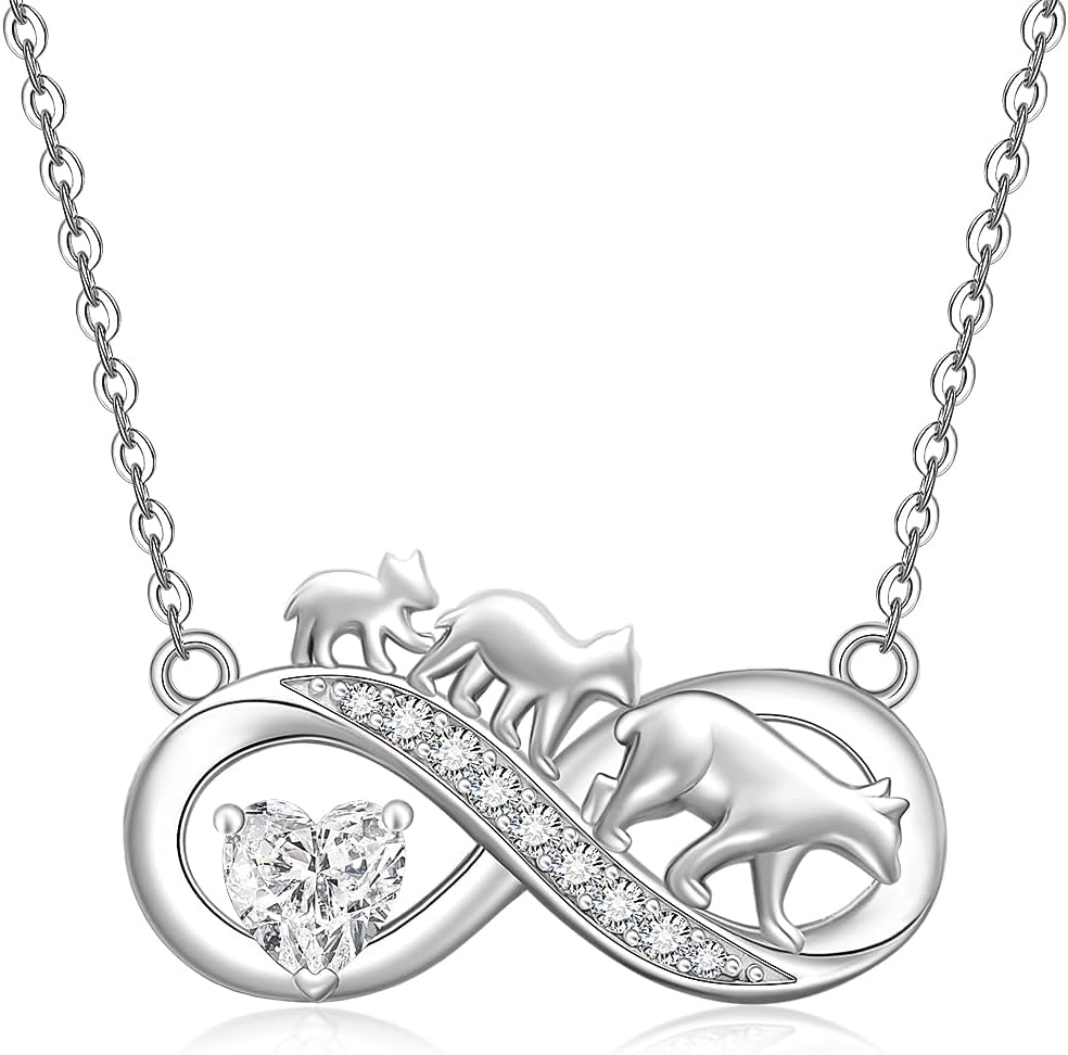 Fenthring Mother Bear Necklace for Women with 2 Cubs Bear Necklaces for Mom Mothers Day Sterling Silver Infinity Pendant Gifts Christmas Jewelry