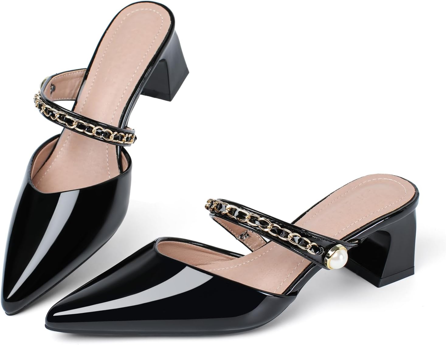 Mules Heels for Women Closed Pointed Toe Leather Backless Block Heels Pumps Comfortable Slip on High Heeled Sandals Prom Wedding Dress Shoes