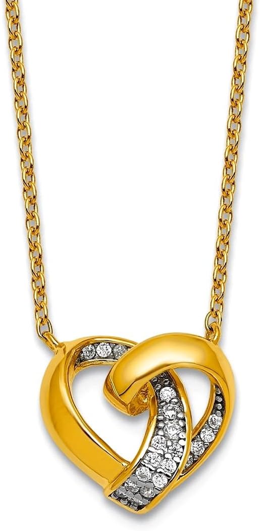 JewelryWeb 12mm 925 Sterling Silver Rhodium Plated Gold-tone Cubic Zirconia Love Knot Heart Necklace 18 Inch Pendant Necklace for Women